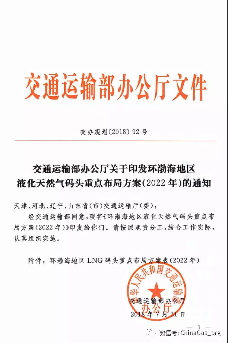 近期,交通运输部办公厅印发《环渤海地区液化天然气码头重点布局方案(2022年)》(下简称《方案》,交办规划﹝2018﹞92号)。交通运输部本次专题发布《方案》,是为了深入贯彻落实习近平生态文明思想,保障北方地区天然气供应运输安全,完善环渤海地区液化天然气码头布局,科学指导码头建设。
